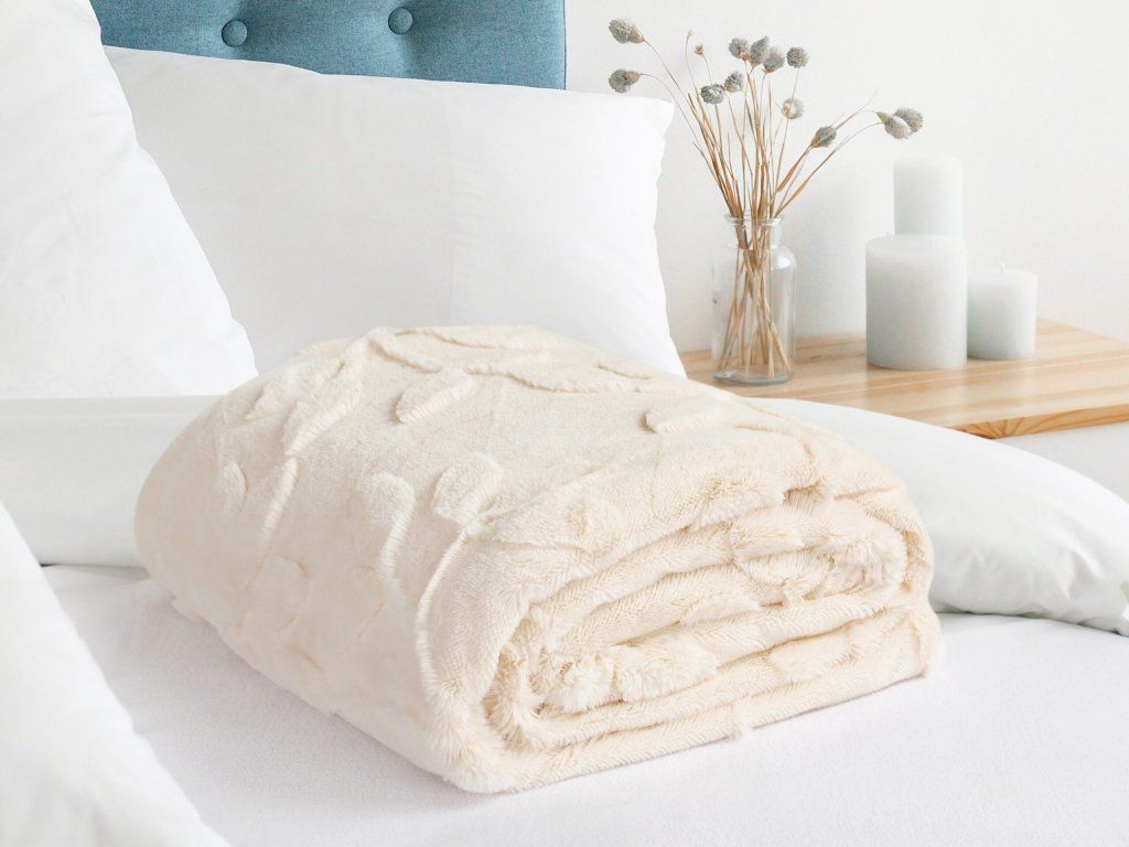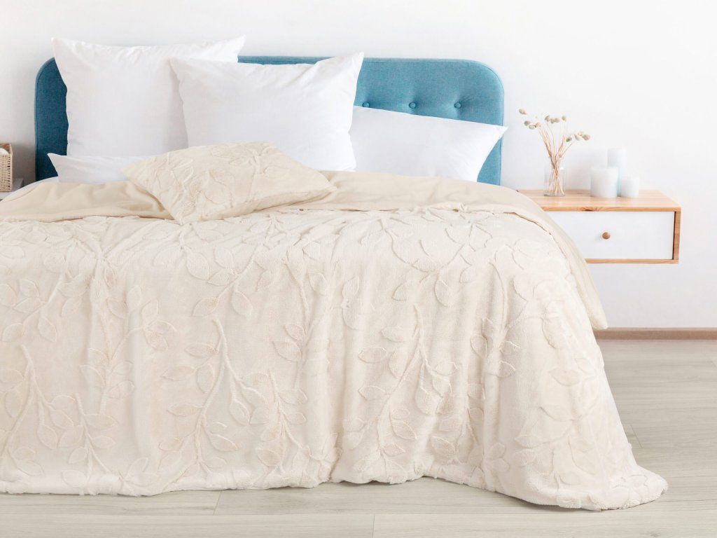 Táto deka so svojimi vynikajúcimi hrejivými vlastnosťami sa rýchlo stane vaším nepostrádateľným spoločníkom, najmä počas chladných zimných večerov. Elegantné jednofarebné prevedenie s 3D vzorom listov dodá vášmu interiéru štýlový vzhľad. Vďaka jednoduchej údržbe si deka uchová svoju kvalitu a žiarivú krémovú farbu po mnoho rokov.